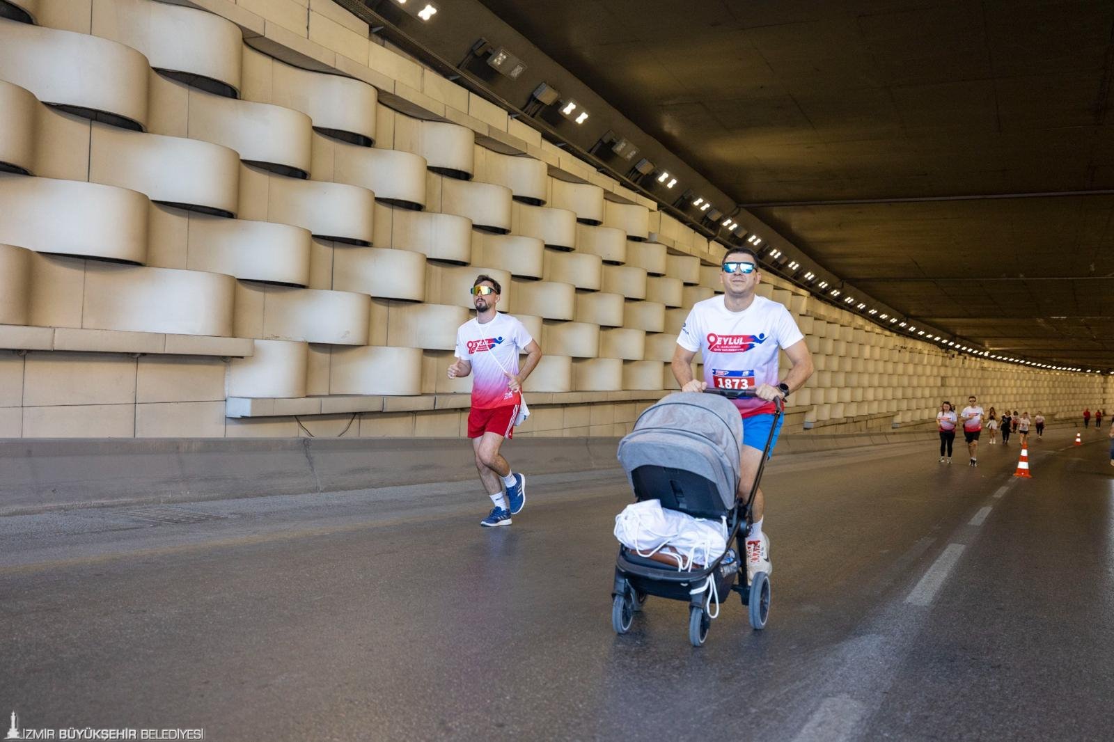 Koşu öncesi Cumhuriyet Meydanı'nda ısınma hareketleri yapılırken, katılımcılar tarafından "9 Eylül İzmir" yazısı oluşturuldu. Yarış başlamadan önce saygı duruşunda bulunularak İstiklal Marşı okundu. Her yaştan sporseverin ter döktüğü koşu, Cumhuriyet Meydanı’ndan başladı. İnciraltı Spor Tesisi yanında bulunan doğal dönüşten dönülerek tekrar Cumhuriyet Meydanı'nda son bulan 21 kilometre 97 metre uzunluğundaki parkuru en erken sürede tamamlayan ise erkeklerde Boaz Kiptoo Kiplagat, kadınlarda Daisy Jeptoo Kimeli oldu. İzmir Büyükşehir Belediyesi sporcusu Ufuk Arda ise Genel Klasman Erkekler kategorisinde 4. olarak başarıya imza attı. İzmir Büyükşehir Belediye Başkan Vekili Dr. Zafer Levent Yıldır ve İzmir Büyükşehir Belediyesi Genel Sekreter Yardımcısı Prof. Dr. Pınar Okyay da maratonu izledi.